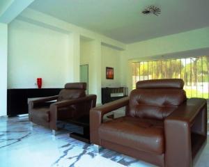 | Descrição: 4 Quartos em suíte. Todos os quartos se encontram equipados com cama de casal, televisor LCD com serviço por satélite e acesso direto para a zona da piscina. 5 Casas de banho. 3 Casas de banho com duche. 1 Casa de banho com banheira. 1 Casa de banho de serviço. Ampla sala de estar com televisor LCD com serviço por cabo, sofá de canto, duas grandes poltronas com mesa de apoio, lareira, acesso direto para a zona da piscina. Cozinha totalmente equipada com fogão a gás, placa e forno elétrico, máquina de lavar loiça, máquina de lavar roupa, torradeira, máquina de café micro-ondas, frigorífico americano, mesa e cadeiras para refeições com vista sobre a zona da piscina e jardim. Ar condicionado nos quartos Internet Alarme Zona de sombra com mobiliário de exterior e de apoio a refeições com mesa e cadeiras. Jardim cuidado com várias árvores, flores e vegetação. Churrasqueira portátil Piscina: 10m x 5m Espreguiçadeiras, zona Chill out e vários guarda-sóis de apoio á zona de piscina. Estacionamento dentro da propriedade A propriedade encontra-se totalmente vedada. |