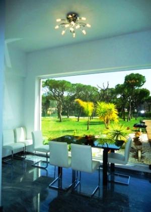 | A zona envolvente da vivenda prima pela sua privacidade e zonas verdes, rodeada pelo jardim totalmente vedado. Com uma arquitetura única e original – quase circular, com o uso de madeira e o vidro no exterior, proporciona muita luz natural em todas as suas divisões, de dimensões generosas. A luminosidade reflete-se sobre todas as superfícies em mármore. No exterior, encontramos a piscina rodeada por um magnífico deck em madeira, zona de sombra com mobiliário para refeições, jardins, recantos e espaços verdes harmoniosamente decorados de plantas e flores, numa área de cerca de 3.800m2. |