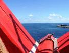 | Assim, na base (eira) existe um quarto com cama de casal e casa de banho privativa com duche; outra casa de banho com duche; casa de máquinas equipada com máquina de lavar roupa e máquina de secar; uma cozinha completamente equipada (máquina de lavar loiça e todos os electrodomésticos essenciais) e zona de refeições com amplas janelas com vista para o mar, ilhéu da Praia e para a ilha Terceira. |