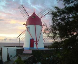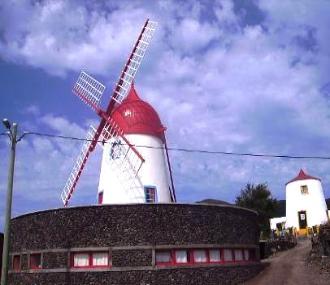 | Os moinhos são um ex-libris da Graciosa. Na ilha existem cerca de 20, estando quatro deles situados na praia. O nosso moinho foi restaurado e adaptado para habitação, tendo sido aproveitada parte da eira onde ele assenta, com acesso interior ao moinho em si. |