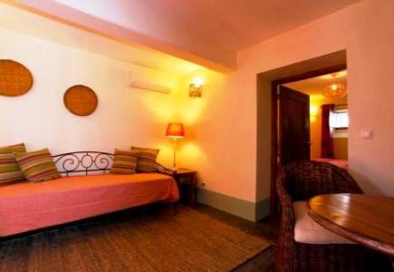 | T2 - Casa Lusitânea” Quarto de 2 camas c/ WC privativo (duche e secador de toalhas) Quarto de casal c/ WC privativo (duche e secador de toalhas) Zona de estar c/ TV Aquecimento central e AC Kitchenette equipada com frigorífico, microondas, espremedor, torradeira e máquina de café. Terraço exterior exclusivo |